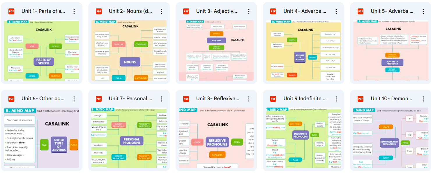 Danh từ chính là nền tảng quan trọng trong tiếng Anh – giúp các con vừa mở rộng vốn từ, vừa tự tin xây dựng câu đúng ngữ pháp. Hy vọng tài liệu ngữ pháp cơ bản mà Casalink chia sẻ sẽ trở thành người bạn đồng hành hữu ích, để các con ôn tập dễ dàng hơn, nhớ lâu hơn và học tập hiệu quả hơn mỗi ngày.